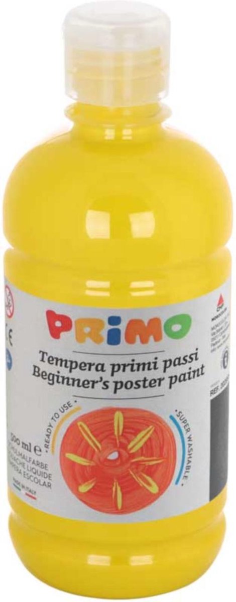 Primo Tempera plakkaatverf Verf maar los. Nu met deze megaverfpot is dat mogelijk! De verf is ook heel goed te gebruiken om andere kleuren verf te mengen. Specificaties: Kleur: citroengeel Geslacht: unisex Materiaal: kunststof Inhoud: 500 ml Leeftijd: vanaf 4 jaar