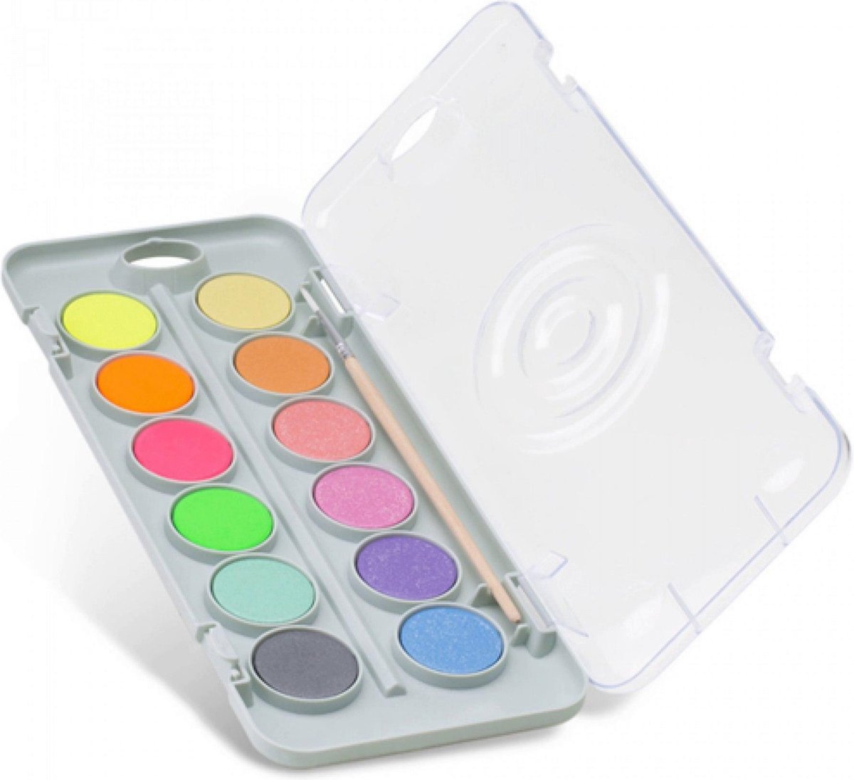 Aquarel Verf - Set voor Kids , Made in Italië PRIMO Kwalieit Verf uit Italië Metallic en Fluorescerende Aquarel Napjes/Tabletten gemaakt door gepigmenteerde poeder van de beste kwaliteit samen te persen, set verpakt in een doos 12 verschillende kleuren Napjes, één penseel en een deksel welke als mengpalet gebruikt kan woden. Bij gebruik met geringe hoeveelheden water zijn de effecten helder en ondoorzichtig. Vlekken moeten onmiddellijk worden verwijderd # 19001154