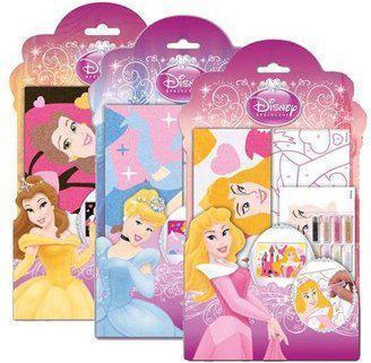 Maak de prinsessen nog mooier door ze te versieren met glitters met de Princess glitterkunst kaarten.