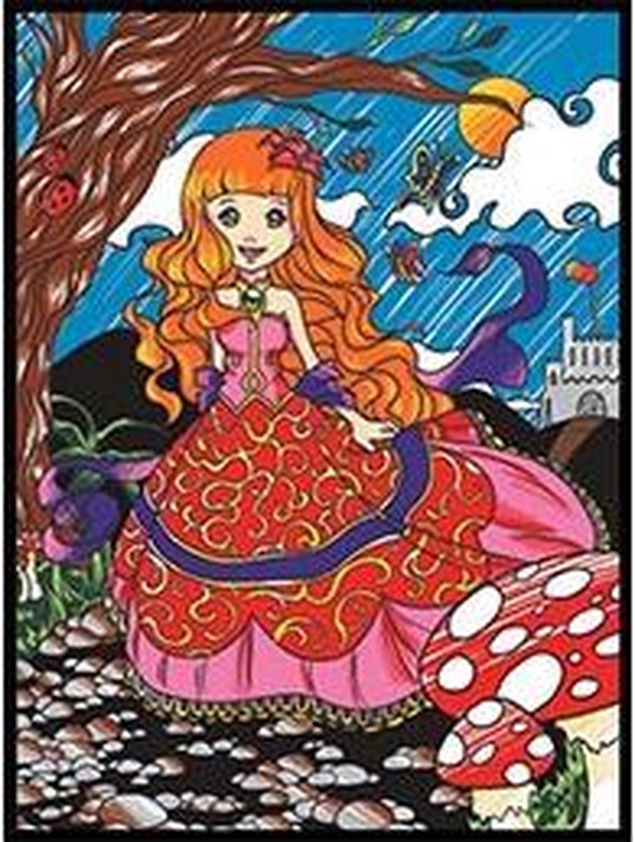 Prinses met paddenstoelen Colorvelvet kleurpakket inclusief 12 stiften. Wat is Colorvelvet? Met Colorvelvet maak je de mooiste kunstwerken maar niet zoals de standaard kleurplaten. De tekeningen zijn gemaakt van een speciaal absorberend karton, gedeeltelijk bedekt met een 1mm dikke zwarte laag fluweel waardoor je een duidelijke scheiding krijgt met hetgeen wat je moet inkleuren. Behalve dat dit stuk fluweel ervoor zorgt dat je de witte vlakken makkelijk kunt inkleuren komt het zwarte fluweel naar voren wat een heel chique geheel geeft op je Colorvelvet kleurplaat. Deze tekeningen zijn eenvoudig, dit maakt Colorvelvet leuk en leerzaam waardoor dit ideaal is voor alle leeftijden vanaf 3 jaar en ouder. Met colorvelvet hebben kinderen plezier en leren ze tegelijkertijd, waardoor ze kleurrijke tekeningen maken waarmee ze ook hun slaapkamer kunnen versieren. Maar ook voor volwassenen is Colorvelvet zeer geschikt om lekker creatief bezig te zijn. De tekeningen kan je op allerlei