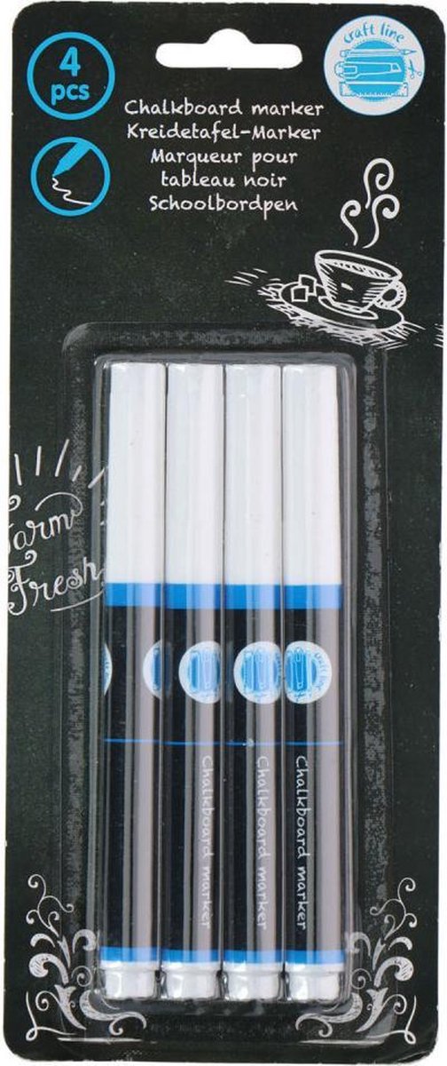 Schoolbordpen krijt, 4st. Pakje met vier schoolbord pennen. Ideaal voor gebruik op krijtborden, glas en ramen. Afmeting verpakking: 24 x 9 x 1 cm Geschikt voor: Vanaf 3 jaar EAN code: 8711252178226 Waarschuwing: Niet geschikt voor kinderen onder de 3 jaar ivm kleine onderdelen