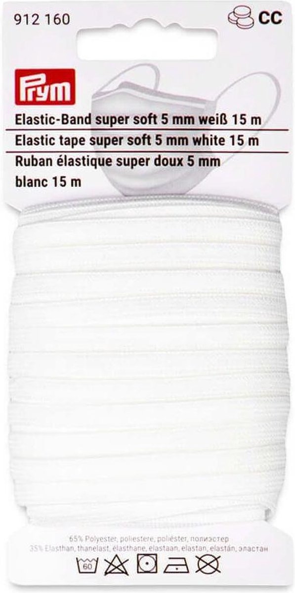 Prym Band Elastiek superlicht zacht 5 mm wit Met Prym's super zachte elastiek kunt u uw eigen mondkapjes, accessoires of kledingstukken maken! Doordat het erg zacht is, voelt het fijn aan op de huid en is het erg geschikt voor het maken van creaties waarbij het elastiek in direct contact staat met de huid. Dit elastiek is OEKO-TEX gecertificeerd wat betekent dat het vrij is van schadelijke stoffen. Gemaakt van 65% polyester en 35% elastaan en wasbaar tot 60°C. Het elastiek is 5mm breed en 15 meter lang. Productinformatie: Dikte: 5 mm Kleur: wit Materiaal: 66% polyester 34% elastodiene Verkoopseenheid: 15 m Onderhoud: 60º normale was niet bleken drogen met normale thermische belasting niet warm strijken chemisch reinigen met perchloorethyleen of zware benzine voorzichtig behandelen Prym Band Elastiek superlicht zacht 5 mm wit