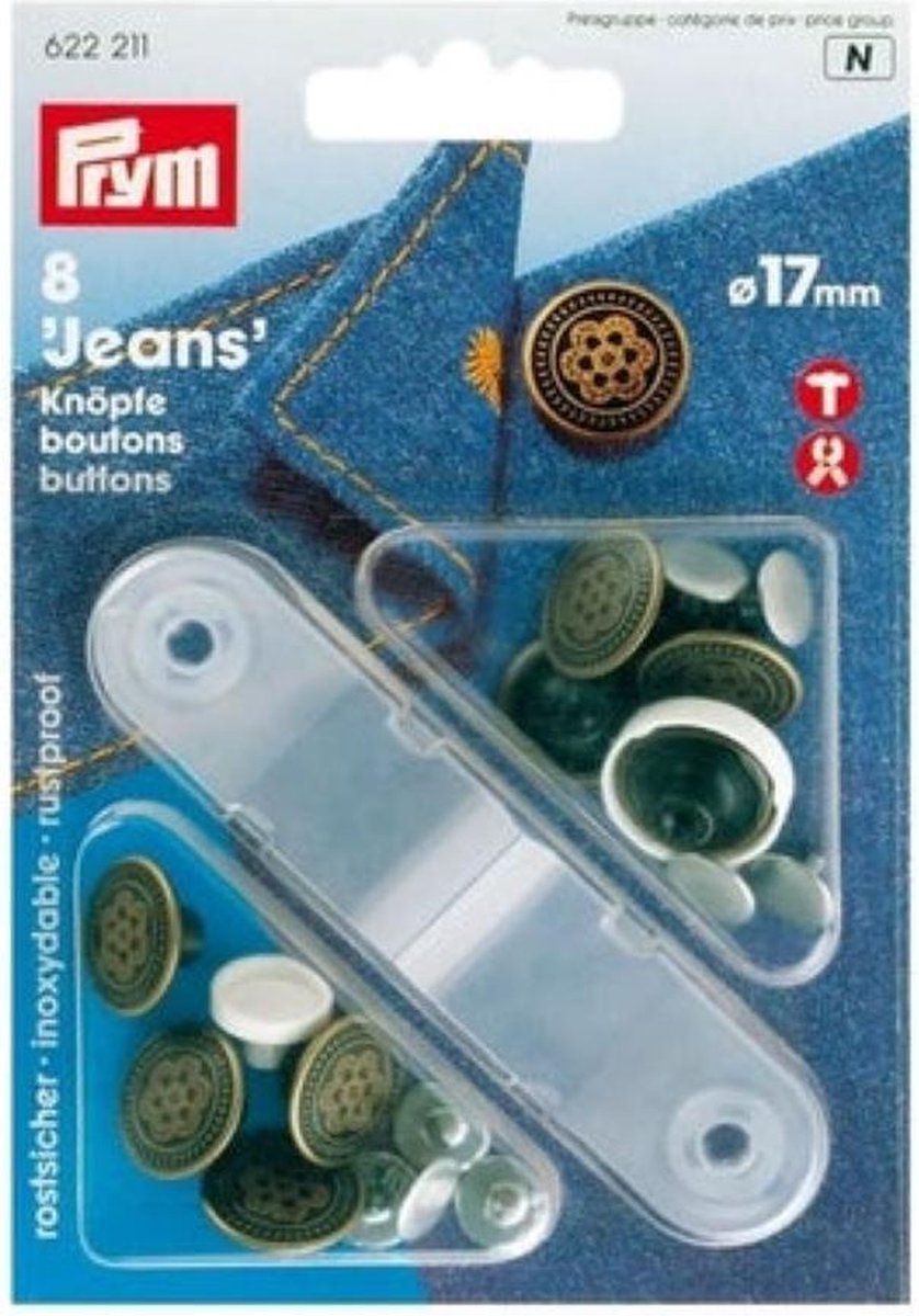 PRODUCT OMSCHRIJVING Deze jeansknopen zijn perfect voor spijkeroverhemden, spijkerjassen en spijkerbroeken. Jeansknopen Bloem Design van Prym zijn roestvrij verkrijgbaar in de grootte 17 mm in de kleur oud messing. Productinformatie: Roestvrij Bloem Design Grootte: 17mm Kleur: oud messing Vernietbaar met: hamer of vario tang Materiaal: messing/kunststof Inhoud: 8 stuks Prym Jeansknopen Bloem Design