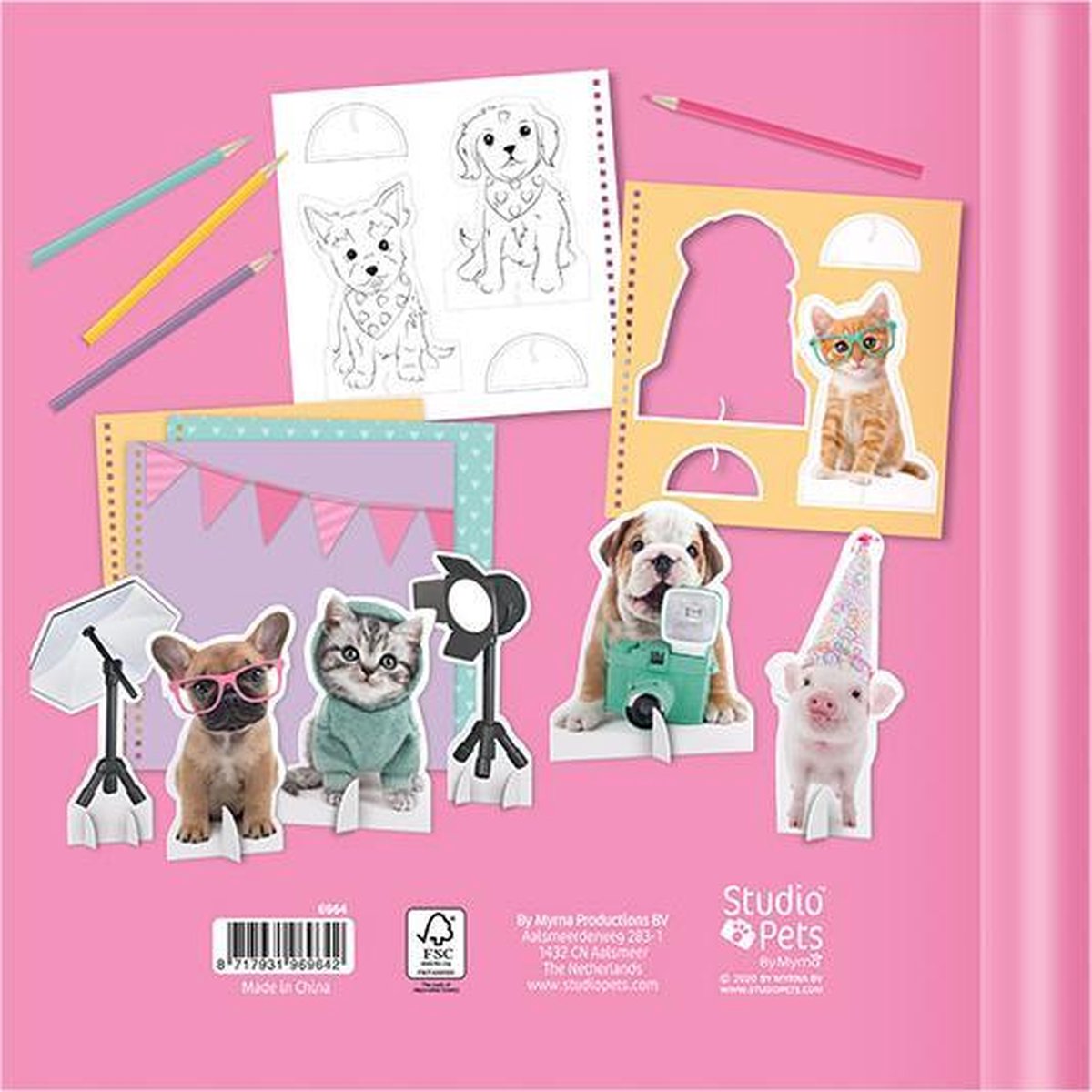 Bouw je eigen fotostudio en maak fotoshoots met je favoriete Studio Pets-supermodellen! Duw de voorgesneden elementen eruit en zet ze voor de camera. Dit boek bevat 10 unieke achtergronden waarmee je geweldige settings kunt creëren voor je fotoshoot. De Studio Pets supermodellen zijn op de achterkant geïllustreerd als kleurplaat voor nog meer kleurplezier. Deel je prachtige afbeeldingen met je vrienden!