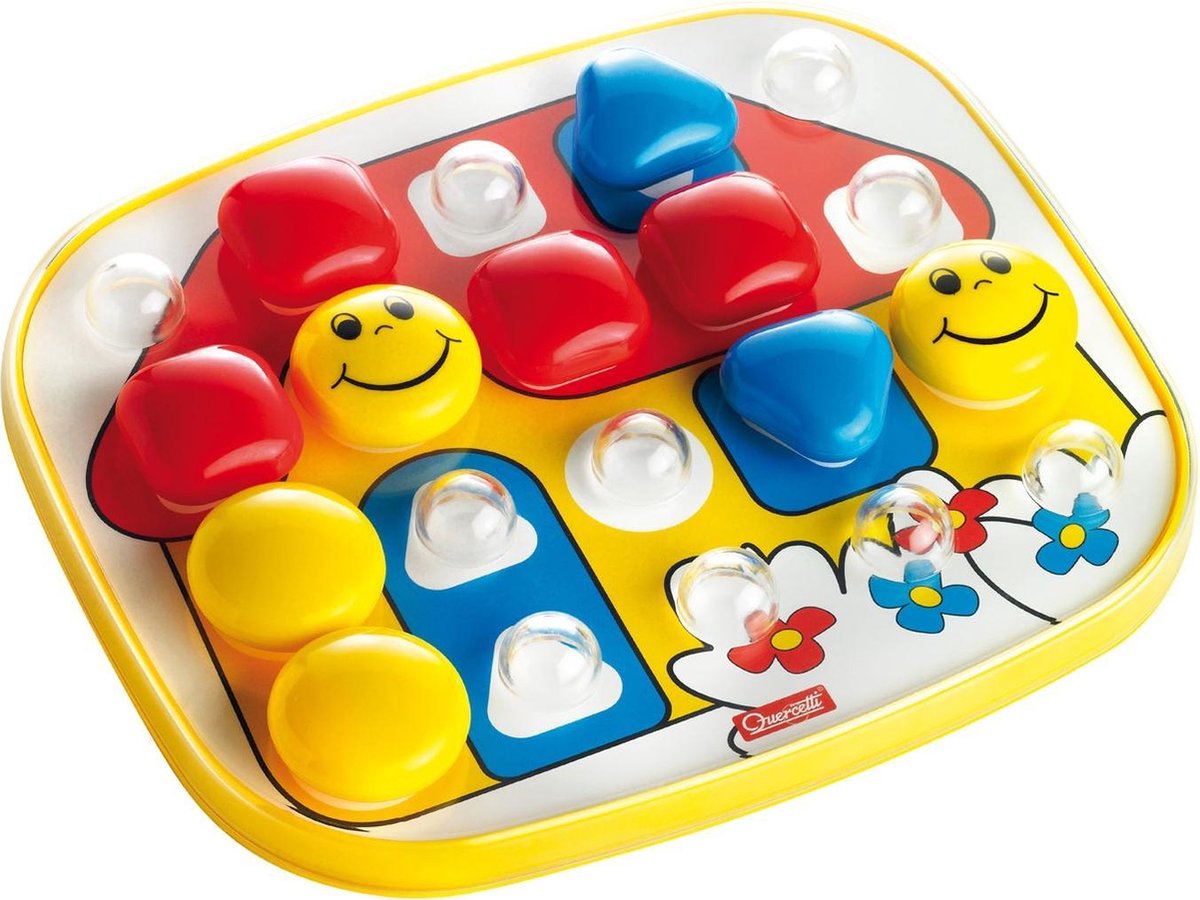 Quercetti Fantacolor Baby huis Maak nu zelf de afbeeldingen af door de kleurrijke pinnen op de juiste plek te drukken. Kinderen ontwikkelen hiermee hun oog-handcoördinatie en het herkennen van kleuren. Het insteekbord is gemakkelijk overal mee naartoe te nemen, hierdoor werk je overal zonder problemen verder aan jouw creatie. Specificaties: Afmetingen verpakking: 32 x 24 x 6 cm Diameter pinnen: 46 mm Materiaal: kunststof Geschikt voor kinderen vanaf 18 maanden. Inhoud: 24 Pinnen in 3 vormen 6 Ontwerpen 1 Insteekbord.