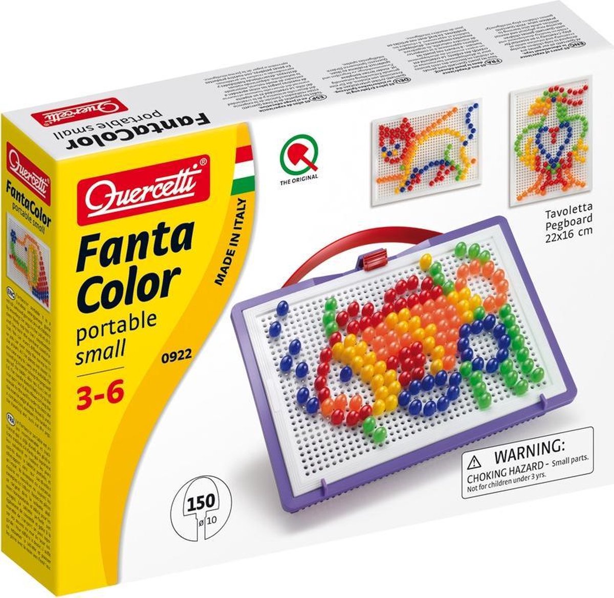 Met deze leuke mozaiekset maak je eigen kunstwerkje of volg je de voorbeelden uit het bijgevoegde boekje. Ben je klaar met spelen, houd het blad dan ondersteboven boven het opbergvak en duw de pinnen eruit. Klik nu het op het opbergvak en de spullen zijn netjes opgeborgen. Dankzij het handvat kun je de mozaiekset overal mee naartoe nemen. DeMozaiekkoffer FantaColor 150-delig is geschikt voor kinderen vanaf3 jaar.