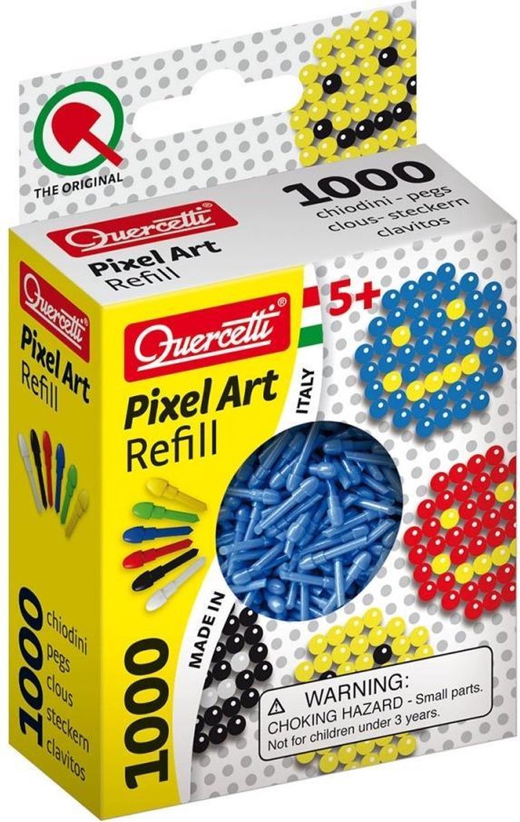 Quercetti Pixel Art aanvuldoos Zijn jouw blauwe pinnen op? Met deze aanvuldoos van 1000 blauwe pinnen heb je er weer genoeg. De pinnen hebben een diameter van 4 mm en zijn gemaakt voor de Pixel Art serie van Quercetti. Specificaties: Diameter pinnen: 4 mm Materiaal: kunststof Kleur: blauw Geschikt voor kinderen vanaf 5 jaar.