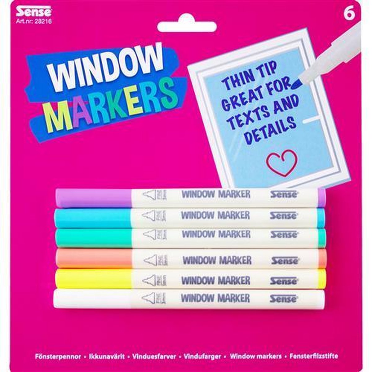 Raam- & whiteboard stiften 6 stuks Ben je op zoek naar stiften die speciaal gemaakt zijn om op een raam, spiegel of whiteboard te schrijven? Deze set stiften van het Zweeds hobby merk Sense zijn hier speciaal voor gemaakt. De set bestaat uit 6 verschillende kleuren, namelijk: Wit Geel Paars Groen Blauw Oranje
