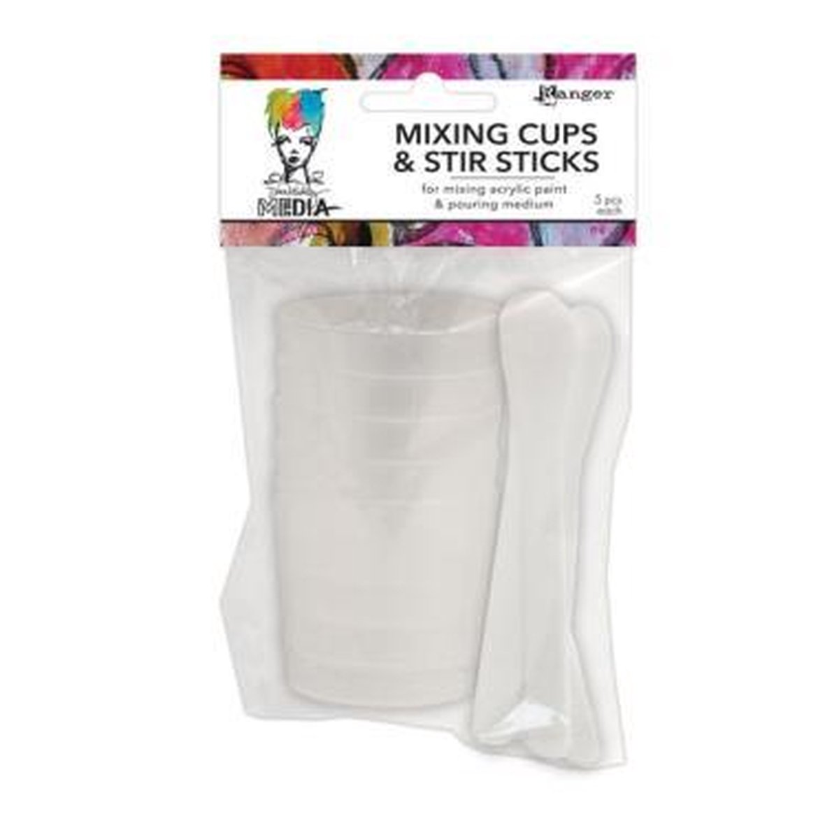 Mengbekers en roerstaafjes van Dina Wakley geschikt voor het mixen van kleine hoeveelheden pouring medium en acrylverf. Elke mengbeker is gemarkeerd met verschillende maten voor nauwkeurig mengen. Deze verpakking bevat 5 herbruikbare bekers en staafjes