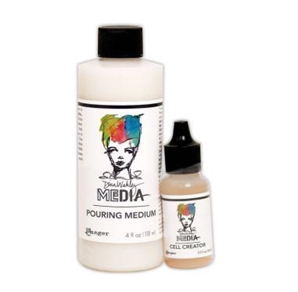 Pouring Medium is een transparante vloeistof op waterbasis om te mengen met acryl of hobbyverf om de verf vloeiender te maken en daardoor geschikt voor diverse vormen van pouring-technieken. Het medium droogt zonder bubbels of scheuren en maakt schrijven, stempelen en tekenen op de giet mogelijk. Deze verpakking bevat 118 ml giet medium en 14 ml cell creator om geïsoleerde variaties aan een giet toe te voegen.