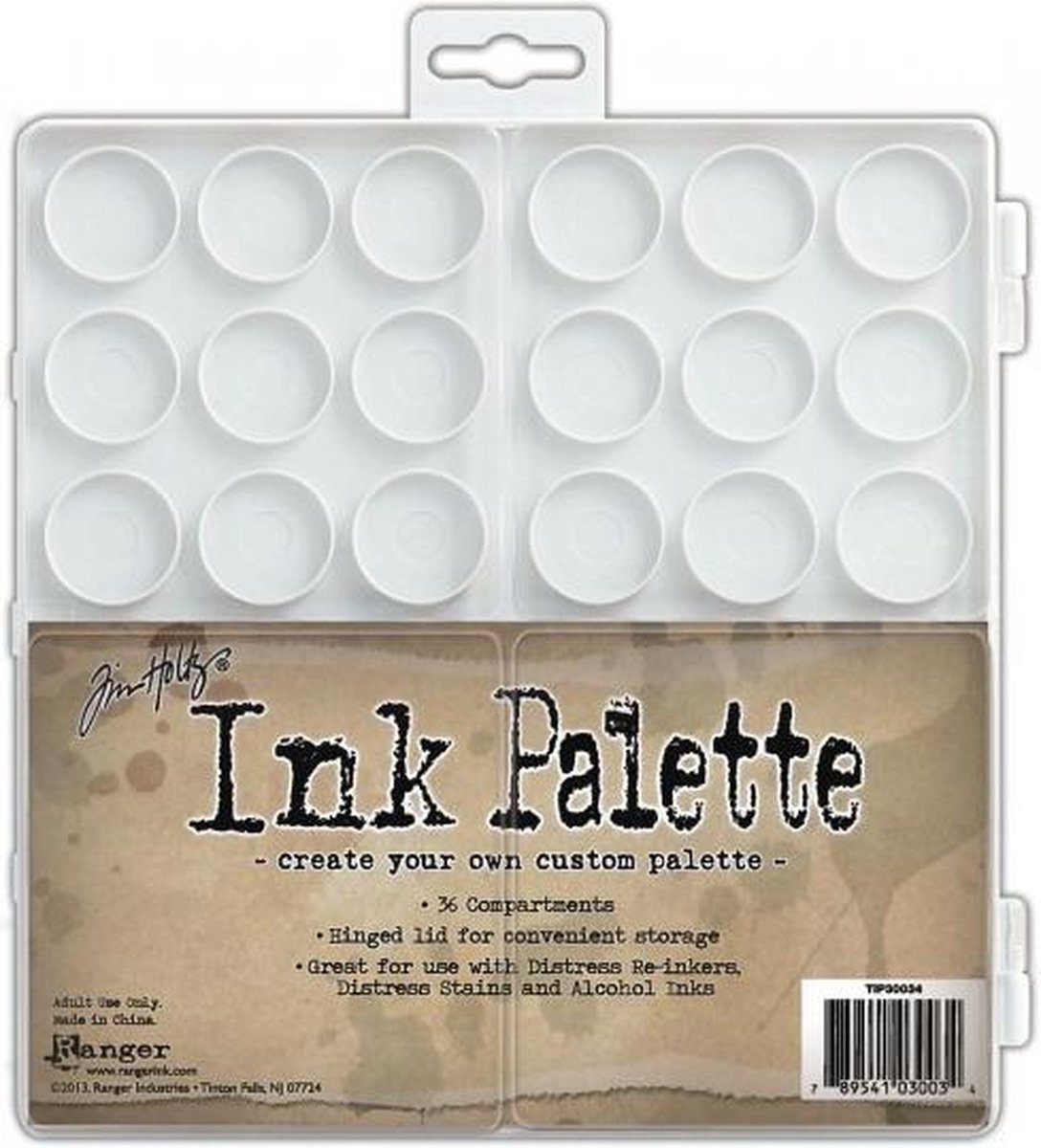 Palet van Tim Holtz voor het gebruik met alcohol inkt, markers en meer. Dit palet heeft 36 vakken en een deksel met scharnier voor gemakkelijk opbergen