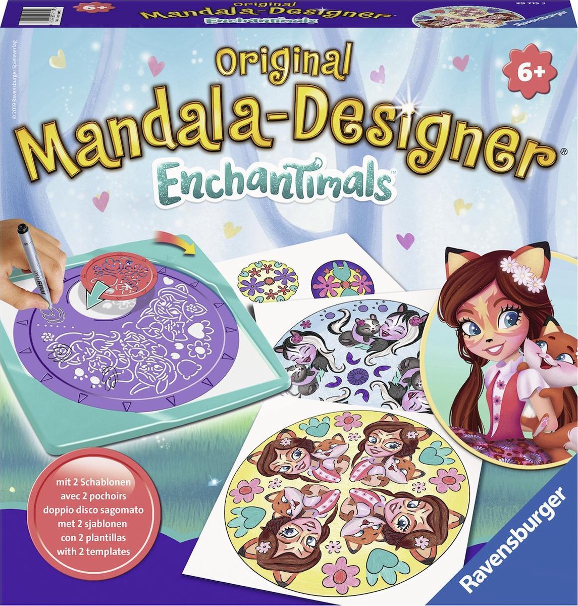 Mandala-Designer® van Ravensburger: gewoon zelf leuke Mandala's schilderen! Met maar één Ravensburger Mandala-Designer®Echantimals-sjabloon kun je honderden verschillende eenhoorn mandala's ontwerpen. En met de bijgeleverde potloden kleur je de mandala's vervolgens prachtig in. Gewoon de speciale sjablonen plaatsen en streep voor streep de omtrekken natekenen. Daarna kan de Mandala in verschillende kleuren ingekleurd worden. Zo maak je stap voor stap een zelfgemaakte Mandala.
