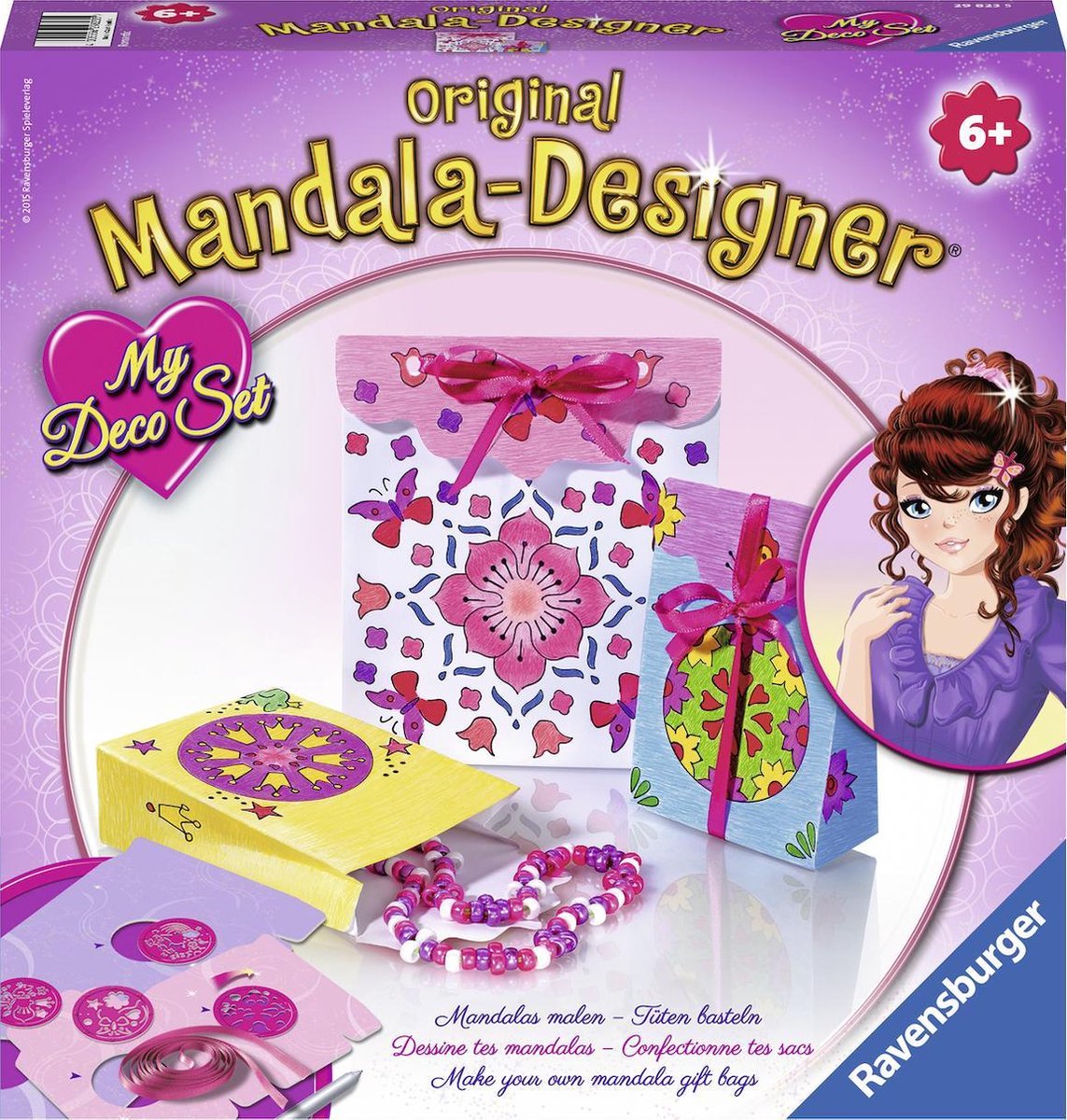 Mandala-Designer® – My Deco Set Romantic, Mandala- en knutselplezier in één! Met de mandala-sjablonen en de voorbeelden kun je heel eenvoudig coole voorwerpen en geschenkverpakkingen maken. Met de zelf gemaakte mandala’s worden ze heel bijzonder. Gewoon de contouren overtrekken, mandala’s tekenen, vorm uitknippen en aan elkaar lijmen – en klaar is je eigen unieke voorwerp! Leuk om cadeau te geven of om speciale dingen in te bewaren.