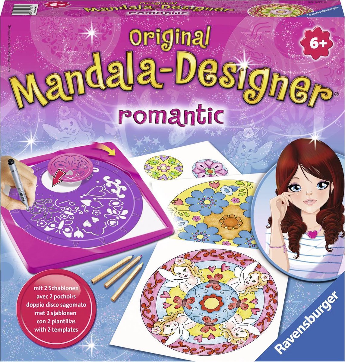 Mandala-Designer® van Ravensburger: gewoon zelf leuke Mandala's schilderen! Met maar één Ravensburger Mandala-Designer®-sjabloon van Romantic 2 in 1 kan je honderden verschillende mandala's ontwerpen. En met de bijgeleverde stiften kleur je de mandala's vervolgens prachtig in. Gewoon de speciale sjablonen plaatsen en streep voor streep de omtrekken natekenen. Daarna kan de Mandala in verschillende kleuren ingekleurd worden. Zo maakt u stap voor stap een zelfgemaakte Mandala.
