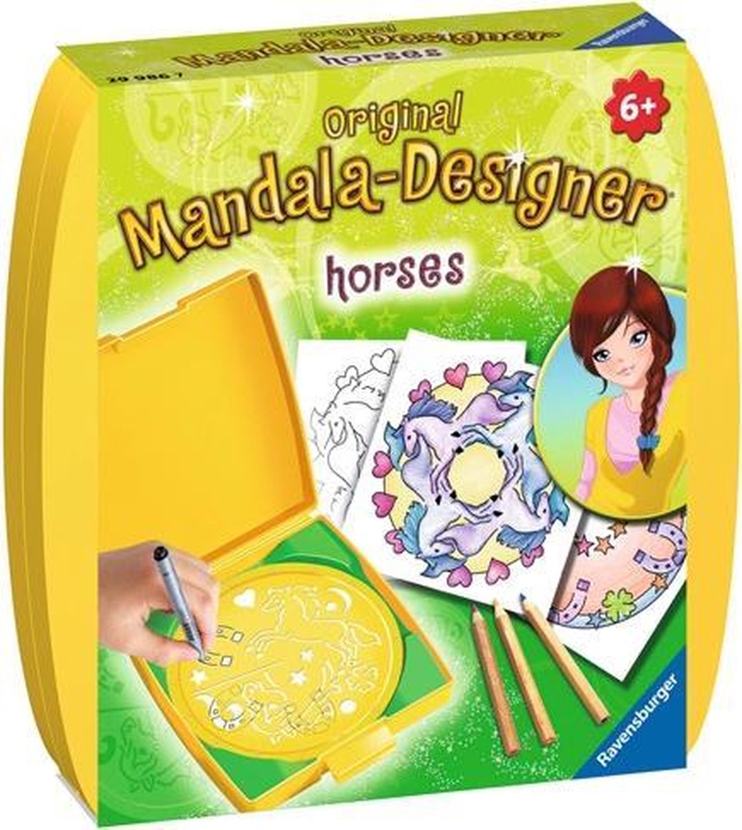 De Ravensburger Mandala-Designer voor onderweg! Met de Mandala-Designer Paarden in Mini-formaat kan je onderweg de mooiste minimandala's ontwerpen. Gewoon het papier inleggen en het sjabloon van pijl naar pijl draaien. Kleur je mandela tot slot mooi in en je zelfontworpen mandala is klaar! Inhoud: Frame Mandala-sjabloon 10 vellen papier Viltstift 3 kleurpotloden