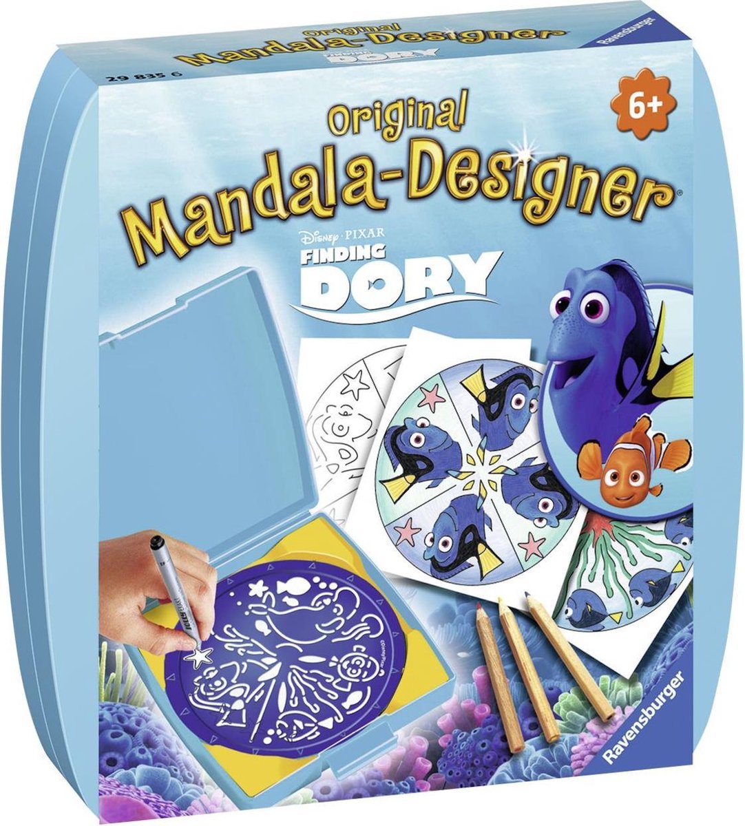 De Ravensburger Mandala-Designer® voor onderweg! Met de Mandala-Designer® Dinsey Finding Dory in Mini-formaat kan je onderweg de mooiste mini mandala's ontwerpen. Gewoon het papier inleggen en het sjabloon van pijl naar pijl draaien. Kleur je mandala tot slot mooi in en je zelfontworpen mandala is klaar Inhoud: Frame mandala-sjabloon 10 vellen papier 1 viltstift 3 kleurpotloden