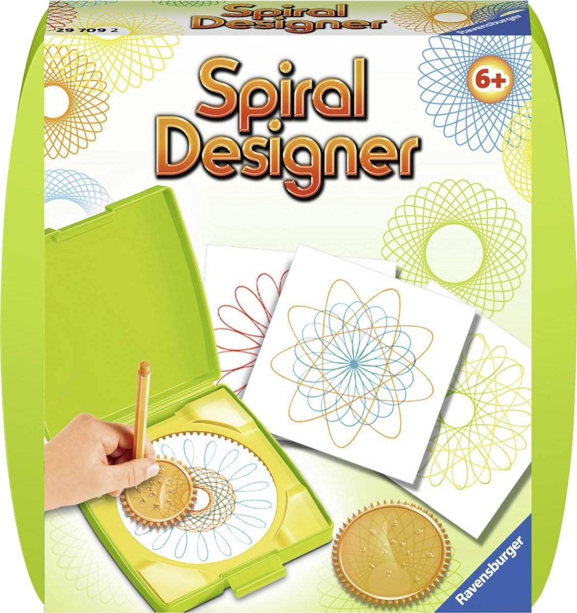 Ravensburger mini Spiral-Designer Groen: Nu kun je ook onderweg de mooiste spiraal-afbeeldingen tekenen. Gewoon papier inleggen, tandwiel uitkiezen en draaien maar. Zo ontstaan oneindig veel spiraal-afbeeldingen. Inhoud: 1 tandkrans, 2 tandwielen, 10 vellen papier, 1 viltstift