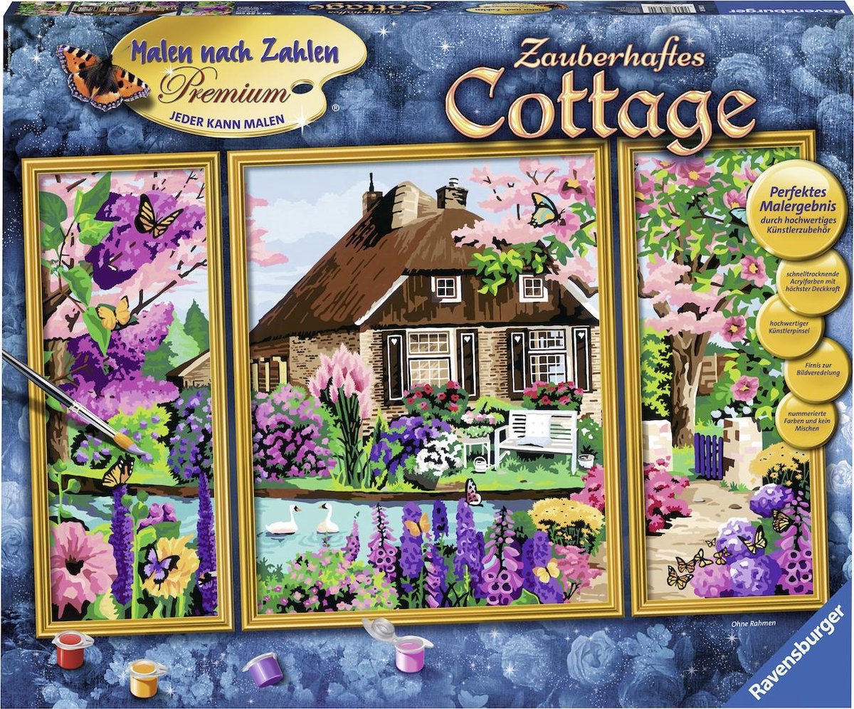 Schilderen op nummer van Ravensburger - iedereen kan schilderen! Dankzij de eenvoudige schildertechniek van schilderen op nummer is het kinderlijk eenvoudig de kunstenaar in jezelf wakker te maken! In de afbeeldingen in de Premium-serie van schilderen op nummer komen romantische werelden tot leven. Wat alle afbeeldingen gemeenschappelijk hebben, is het zachte kleurgebruik en het indrukwekkende schilderoppervlak. Uitpakken en aan de slag, met de afbeelding van Betoverende Cottage! Inhoud: 1 schilderij + acrylverf + vernis + schilderspalet + penseel. Lijstje niet inbegrepen.