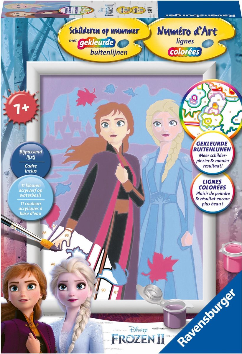 Schilderen op nummer van Ravensburger - iedereen kan schilderen! Dankzij de gekleurde buitenlijnen kunnen kinderen de afbeelding van Disney Frozen 2 en de benodigde kleuren sneller herkennen. Zo is het kinderlijk eenvoudig de kunstenaar in jezelf wakker te maken! Met grote schilderoppervlakken en veel verschillende kleuren zijn de schilderplaten van de schilderen op nummer Classic-serie van Ravensburger zeer geschikt voor de jonge kunstenaar. Uitpakken en aan de slag! Onze acrylverf: • droogt snel • is op waterbasis • ruikt niet onaangenaam • maakt penseelreiniger overbodig