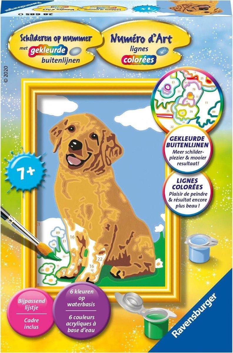 Dankzij de gekleurde buitenlijnen kunnen kinderen de afbeelding van dit super schattige hondje en de benodigde kleuren sneller herkennen. Zo lukt het schilderen gegarandeerd! Iedereen Kan Schilderen biedt meer dan een penseel en verf: een geweldige ervaring, een resultaat dat gezien mag worden en blije gezichten. Deze schilderset bevat 6 kleuren acrylverf in hersluitbare potjes, een penseel, voorbeeldblad, schilderpaneel en een lijstje. Alles van hoogwaardig materiaal en afgestemd op de leeftijd van de gebruiker. Eigenschappen van de acrylverf: • droogt snel • is op waterbasis • ruikt niet onaangenaam • maakt penseelreiniger overbodig Afmeting: 8,5 x 12 cm