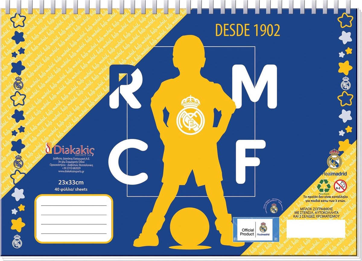 Real Madrid kleurblok Met dit kleurblok heb jij uren plezier. Laat je creativiteit zien in het kleurblok van jouw favoriete voetbalclub. Specificaties: Kleur: geel, blauw Geslacht: unisex Materiaal: papier Afmetingen: 23 x 33 cm Leeftijd: vanaf 4 jaar