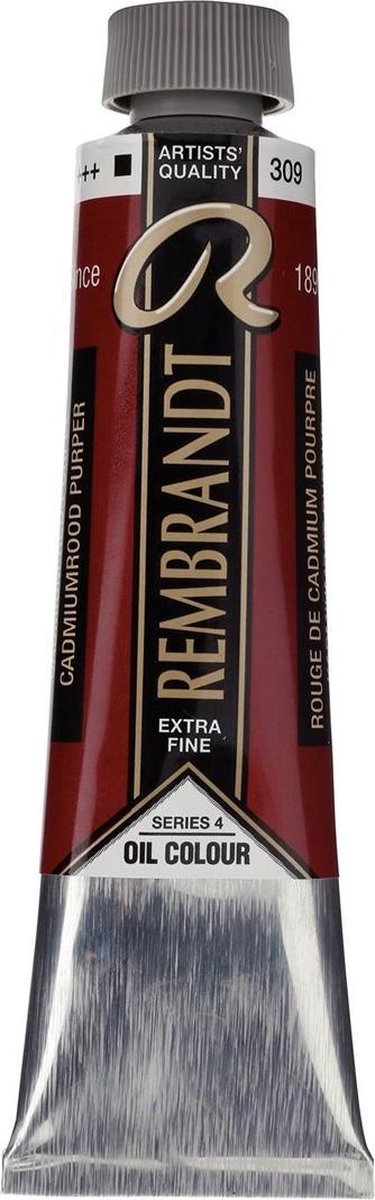 De professionele olieverf van Rembrandt is een superieure verf die met zorg in Nederland wordt samengesteld uit de beste grondstoffen. Het assortiment bestaat uit levendige, intense kleuren in elke gewenste dekkingsgraad. De fijngemalen pigmenten zijn zeer geconcentreerd voor optimale kleurkracht. Rembrandt verf biedt de hoogste lichtechtheids- en duurzaamheidsgraad. Cadmiumrood purper (309). Tube 40 ml.