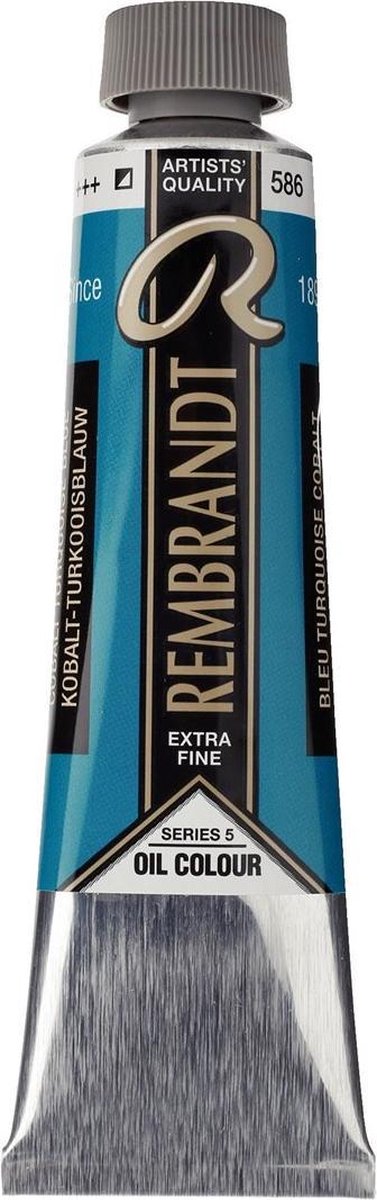 De professionele olieverf van Rembrandt is een superieure verf die met zorg in Nederland wordt samengesteld uit de beste grondstoffen. Het assortiment bestaat uit levendige, intense kleuren in elke gewenste dekkingsgraad. De fijngemalen pigmenten zijn zeer geconcentreerd voor optimale kleurkracht. Rembrandt verf biedt de hoogste lichtechtheids- en duurzaamheidsgraad. Kobaltturkooisblauw (586). Tube 40 ml.
