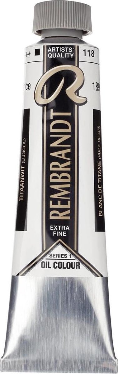 De professionele olieverf van Rembrandt is een superieure verf die met zorg in Nederland wordt samengesteld uit de beste grondstoffen. Het assortiment bestaat uit levendige, intense kleuren in elke gewenste dekkingsgraad. De fijngemalen pigmenten zijn zeer geconcentreerd voor optimale kleurkracht. Rembrandt verf biedt de hoogste lichtechtheids- en duurzaamheidsgraad. Titaanwit (lijnolie) (118). Tube 40 ml.