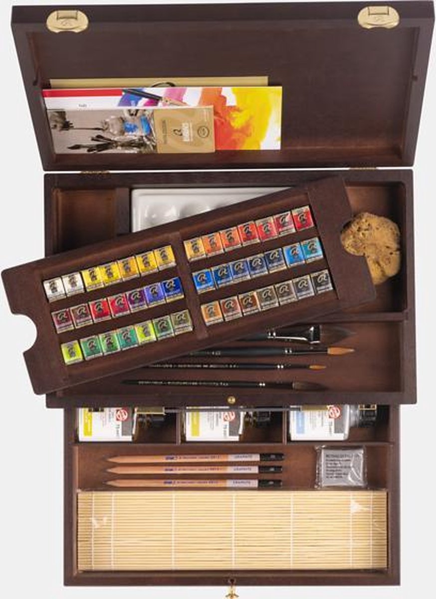 Les aquarelles Rembrandt sont fabriquées aux Pays-Bas avec les meilleures matières premières. Cette gamme de couleurs de qualité professionnelle est fabriquée avec les pigments les plus purs, et la gomme arabique la plus pure, pour des couleurs brillantes et contrastées