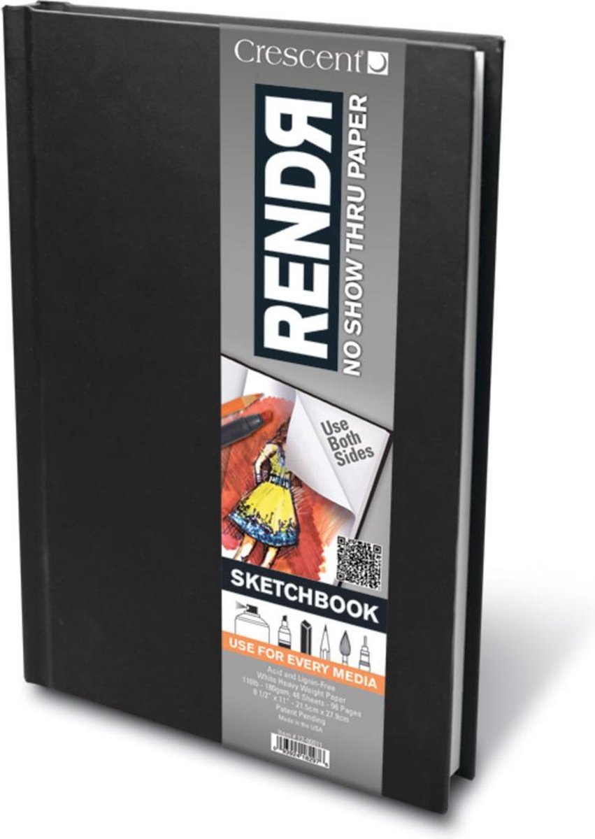 REND? No Show Thru Paper is revolutionair: elke pagina (beide zijden) kan worden gebruikt, ongeacht de media. Gebruik met potlood, verf, pen, conte, houtskool, stift, inkt, spuitverf, alcohol kleurstoffen – het zal niet doorlopen! Kenmerken – Zuur en ligninevrij wit zwaar 180gsm papier – Zwarte heavy-duty kaft en duurzame symth-genaaide binding beschermt pagina’s – Compact 21,5 x 28cm formaat past in tassen en schetsdozen – 48 vellen