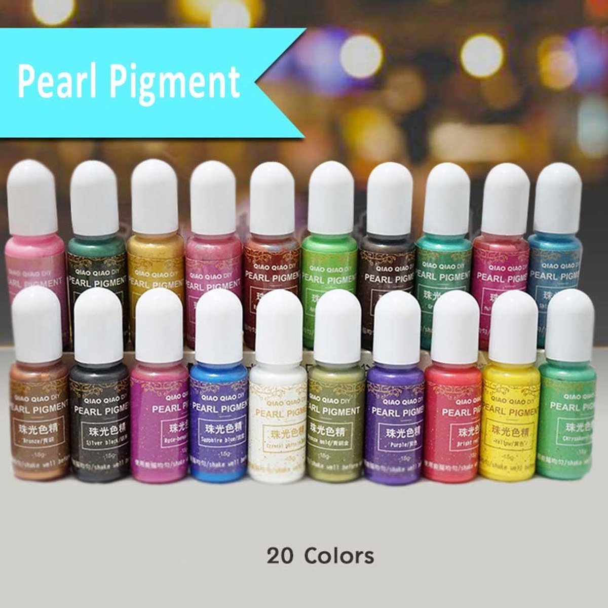 Geef een prachtig parelmoer effect aan jouw Resin art project met deze pigment kleurstof. De kleuren mengen goed met zowel UV-Resin, als AB-Resin en kunnen ook onderling gemengd worden. Een paar druppels zijn al voldoende voor een geweldig effect. Set van 20 kleuren. Deze set bestaat uit de volgende pigment kleuren: Yellow Crystal White Bright Red Multicolor Red Silver Black Gold Brownish Red Purple Shiny Blue Green Bronze Sapphire Blue Light Pink Rose Bengal Pink Chrysoberyl Apple Green Brown Blackish Green Bronze Gold 15 gram per fles