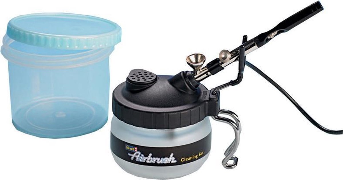 Revell airbrush cleaning set Deze cleaning set is geschikt om air brush spuitjes te reinigen. Specificaties: Geslacht: unisex Materiaal: kunststof Kleur: zwart Afmeting: 13 cm