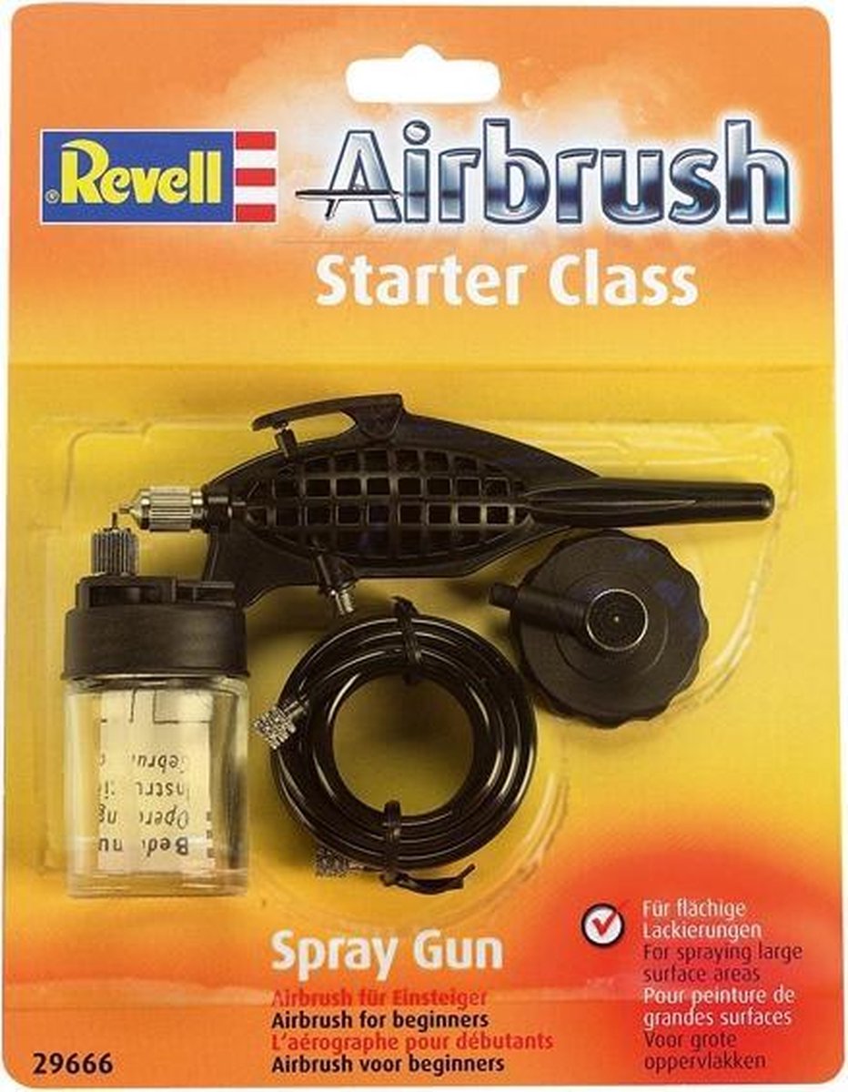 Revell Airbrush pistool Starter Class Airbrush is waarschijnlijk de meest geavanceerde techniek voor het aanbrengen van kleuren op een bepaald oppervlak. Perfecte kleurverlopen en speciale effecten kunnen alleen worden bereikt met een speciaal airbrush spuitpistool. De reden voor deze veelzijdigheid is dat je het verfoppervlak niet eens aanraakt tijdens het spuiten. Zelfs moeilijke en oneffen oppervlakken kunnen precies met het spuitpistool worden gespoten. Ideaal voor de beginnende en ervaren modelbouwer! Specificaties: Geslacht: junior, unisex Kleur: zwart Materiaal: kunststof Leeftijd: vanaf 8 jaar