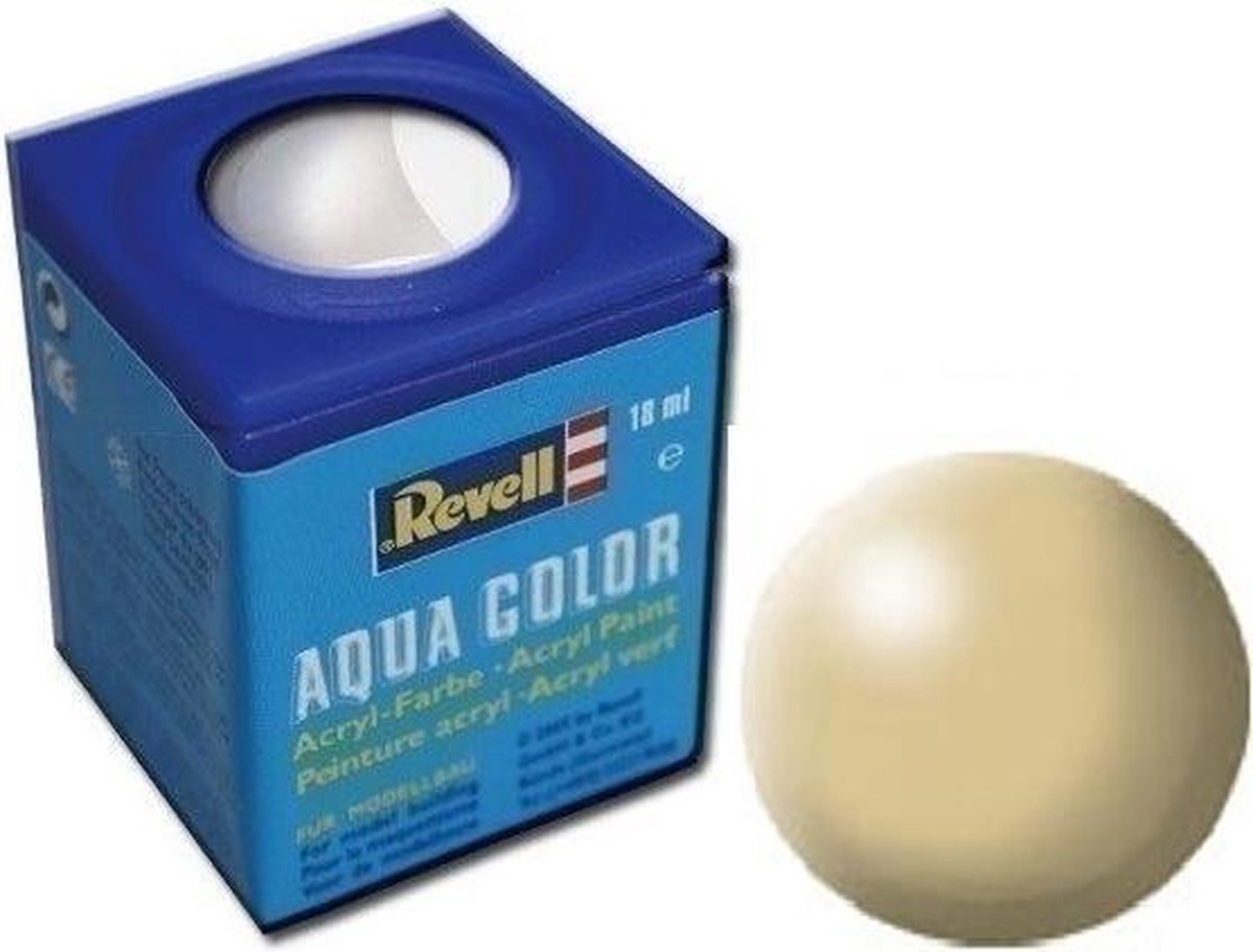 Revell Aqua Color waterverf Revell Aqua Color is met water verdunbare verf met hoge dekking! Milieuvriendelijk, vrijwel reukloos en niet brandbaar! Reeds na een uur kan over de drogende verf heen worden geschilderd. De verf is na twee tot drie uur door en door droog. De diverse kleuren kunnen met elkaar worden gemengd en zijn alleen met water te verdunnen. Met deze modelbouwverf kunnen buitengewoon gladde kleurvlakken gerealiseerd worden. Voor airbrushing wordt de verf met hoogstens 20 tot 25% water verdund. Specificaties: Geslacht: unisex Kleur: beige halfglanzend Leeftijd: vanaf 12 jaar Materiaal: metaal, verf Inhoud: 18 ml
