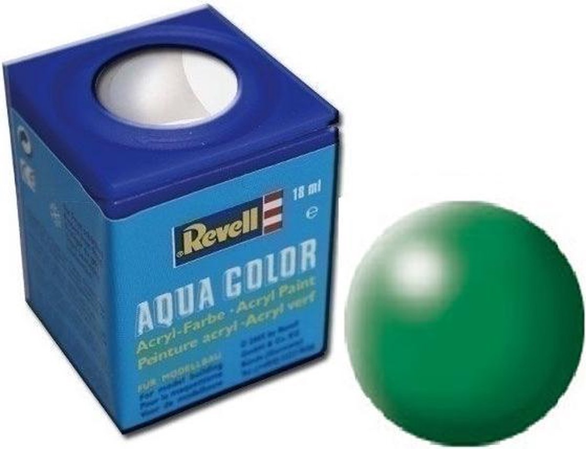 Revell Aqua Color waterverf Revell Aqua Color is met water verdunbare verf met hoge dekking! Milieuvriendelijk, vrijwel reukloos en niet brandbaar! Reeds na een uur kan over de drogende verf heen worden geschilderd. De verf is na twee tot drie uur door en door droog. De diverse kleuren kunnen met elkaar worden gemengd en zijn alleen met water te verdunnen. Met deze modelbouwverf kunnen buitengewoon gladde kleurvlakken gerealiseerd worden. Voor airbrushing wordt de verf met hoogstens 20 tot 25% water verdund. Specificaties: Geslacht: unisex Kleur: bladgroen halfglanzend Leeftijd: vanaf 12 jaar Materiaal: metaal, verf Inhoud: 18 ml