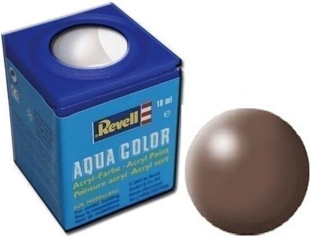 Revell Aqua Color waterverf Revell Aqua Color is met water verdunbare verf met hoge dekking! Milieuvriendelijk, vrijwel reukloos en niet brandbaar! Reeds na een uur kan over de drogende verf heen worden geschilderd. De verf is na twee tot drie uur door en door droog. De diverse kleuren kunnen met elkaar worden gemengd en zijn alleen met water te verdunnen. Met deze modelbouwverf kunnen buitengewoon gladde kleurvlakken gerealiseerd worden. Voor airbrushing wordt de verf met hoogstens 20 tot 25% water verdund. Specificaties: Geslacht: unisex Kleur: bruin halfglanzend Leeftijd: vanaf 12 jaar Materiaal: metaal, verf Inhoud: 18 ml