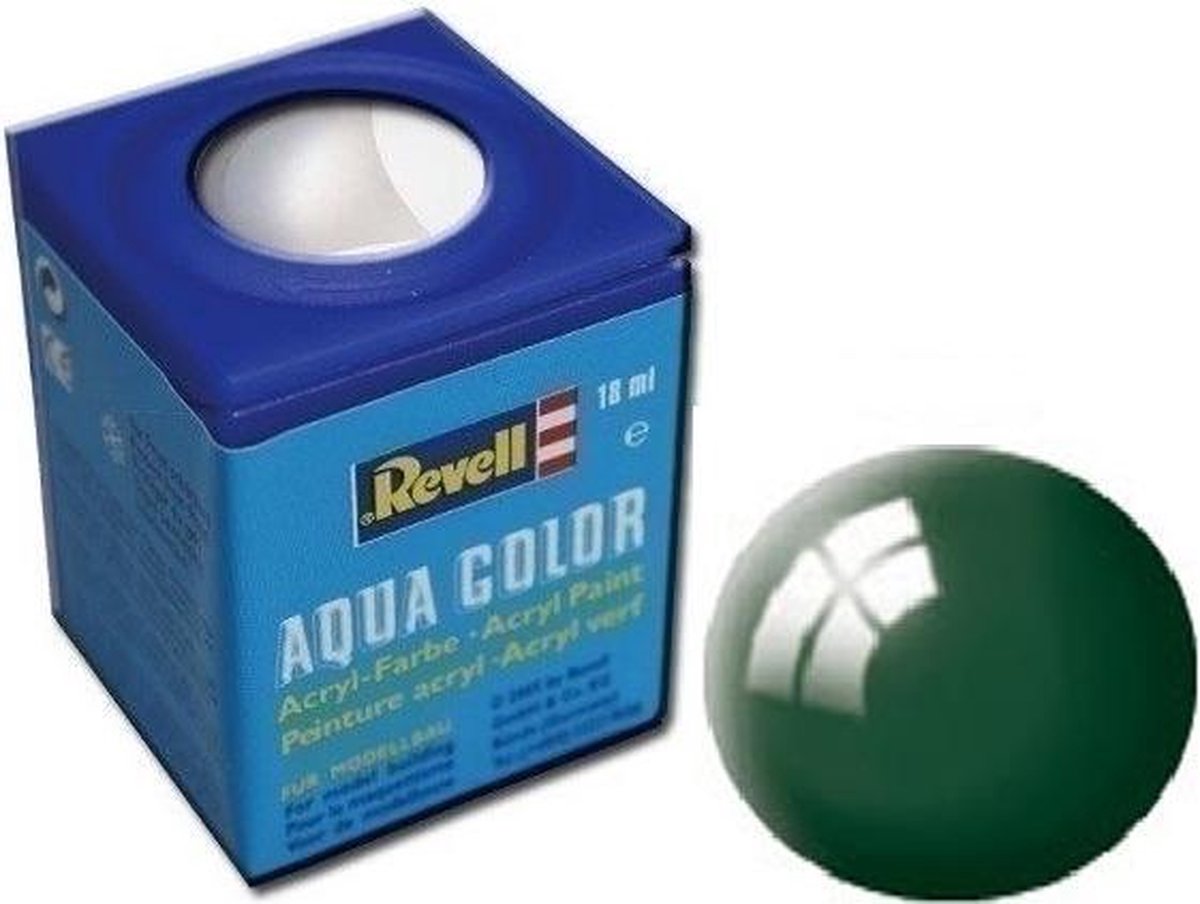 Revell Aqua Color waterverf Revell Aqua Color is met water verdunbare verf met hoge dekking! Milieuvriendelijk, vrijwel reukloos en niet brandbaar! Reeds na een uur kan over de drogende verf heen worden geschilderd. De verf is na twee tot drie uur door en door droog. De diverse kleuren kunnen met elkaar worden gemengd en zijn alleen met water te verdunnen. Met deze modelbouwverf kunnen buitengewoon gladde kleurvlakken gerealiseerd worden. Voor airbrushing wordt de verf met hoogstens 20 tot 25% water verdund. Specificaties: Geslacht: unisex Kleur: donkergroen glanzend Leeftijd: vanaf 12 jaar Materiaal: metaal, verf Inhoud: 18 ml