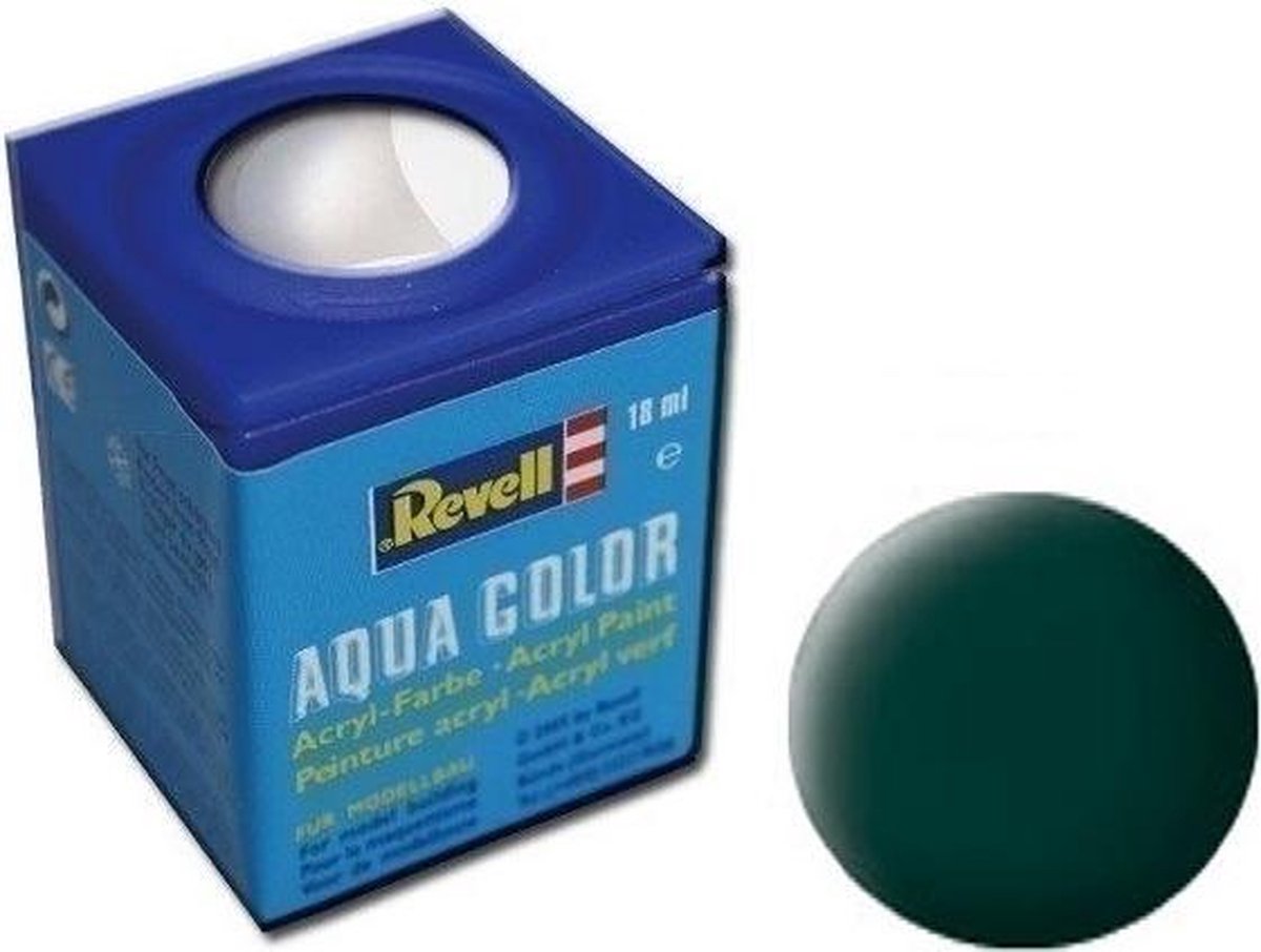 Revell Aqua Color waterverf Revell Aqua Color is met water verdunbare verf met hoge dekking! Milieuvriendelijk, vrijwel reukloos en niet brandbaar! Reeds na een uur kan over de drogende verf heen worden geschilderd. De verf is na twee tot drie uur door en door droog. De diverse kleuren kunnen met elkaar worden gemengd en zijn alleen met water te verdunnen. Met deze modelbouwverf kunnen buitengewoon gladde kleurvlakken gerealiseerd worden. Voor airbrushing wordt de verf met hoogstens 20 tot 25% water verdund. Specificaties: Geslacht: unisex Kleur: donkergroen/zwart mat Leeftijd: vanaf 12 jaar Materiaal: metaal, verf Inhoud: 18 ml