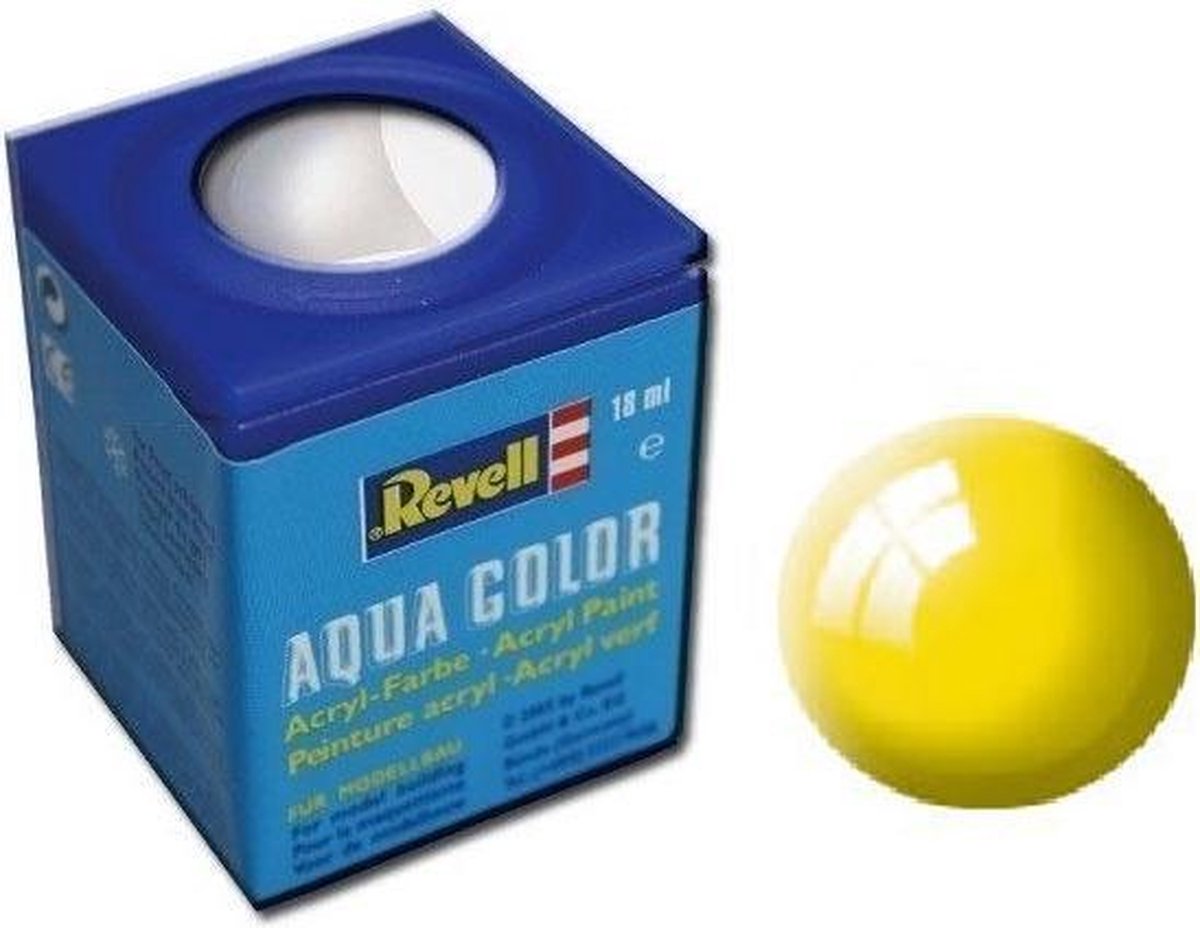 Revell Aqua Color waterverf Revell Aqua Color is met water verdunbare verf met hoge dekking! Milieuvriendelijk, vrijwel reukloos en niet brandbaar! Reeds na een uur kan over de drogende verf heen worden geschilderd. De verf is na twee tot drie uur door en door droog. De diverse kleuren kunnen met elkaar worden gemengd en zijn alleen met water te verdunnen. Met deze modelbouwverf kunnen buitengewoon gladde kleurvlakken gerealiseerd worden. Voor airbrushing wordt de verf met hoogstens 20 tot 25% water verdund. Specificaties: Geslacht: unisex Kleur: geel glanzend Leeftijd: vanaf 12 jaar Materiaal: metaal, verf Inhoud: 18 ml