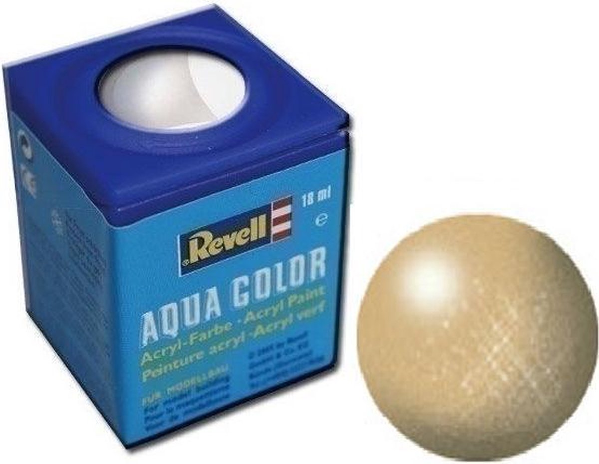 Revell Aqua Color waterverf Revell Aqua Color is met water verdunbare verf met hoge dekking! Milieuvriendelijk, vrijwel reukloos en niet brandbaar! Reeds na een uur kan over de drogende verf heen worden geschilderd. De verf is na twee tot drie uur door en door droog. De diverse kleuren kunnen met elkaar worden gemengd en zijn alleen met water te verdunnen. Met deze modelbouwverf kunnen buitengewoon gladde kleurvlakken gerealiseerd worden. Voor airbrushing wordt de verf met hoogstens 20 tot 25% water verdund. Specificaties: Geslacht: unisex Kleur: goud metallic Leeftijd: vanaf 12 jaar Materiaal: metaal, verf Inhoud: 18 ml