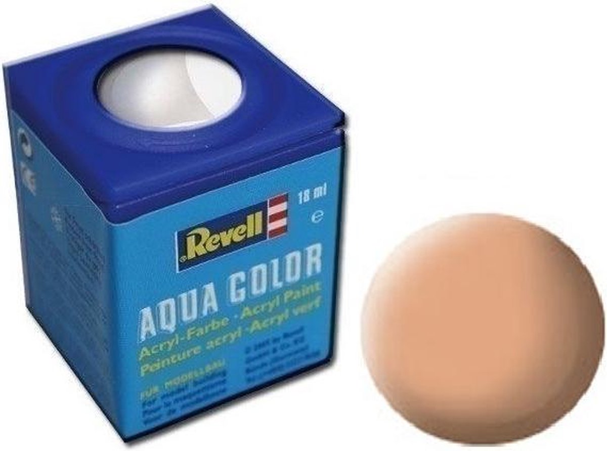Revell Aqua Color waterverf Revell Aqua Color is met water verdunbare verf met hoge dekking! Milieuvriendelijk, vrijwel reukloos en niet brandbaar! Reeds na een uur kan over de drogende verf heen worden geschilderd. De verf is na twee tot drie uur door en door droog. De diverse kleuren kunnen met elkaar worden gemengd en zijn alleen met water te verdunnen. Met deze modelbouwverf kunnen buitengewoon gladde kleurvlakken gerealiseerd worden. Voor airbrushing wordt de verf met hoogstens 20 tot 25% water verdund. Specificaties: Geslacht: unisex Kleur: houtkleur mat Leeftijd: vanaf 12 jaar Materiaal: metaal, verf Inhoud: 18 ml