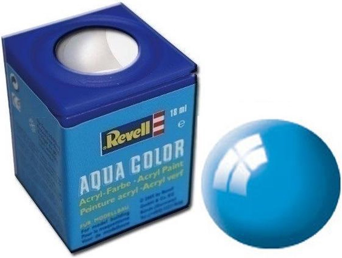 Revell Aqua Color waterverf Revell Aqua Color is met water verdunbare verf met hoge dekking! Milieuvriendelijk, vrijwel reukloos en niet brandbaar! Reeds na een uur kan over de drogende verf heen worden geschilderd. De verf is na twee tot drie uur door en door droog. De diverse kleuren kunnen met elkaar worden gemengd en zijn alleen met water te verdunnen. Met deze modelbouwverf kunnen buitengewoon gladde kleurvlakken gerealiseerd worden. Voor airbrushing wordt de verf met hoogstens 20 tot 25% water verdund. Specificaties: Geslacht: unisex Kleur: lichtblauw glanzend Leeftijd: vanaf 12 jaar Materiaal: metaal, verf Inhoud: 18 ml