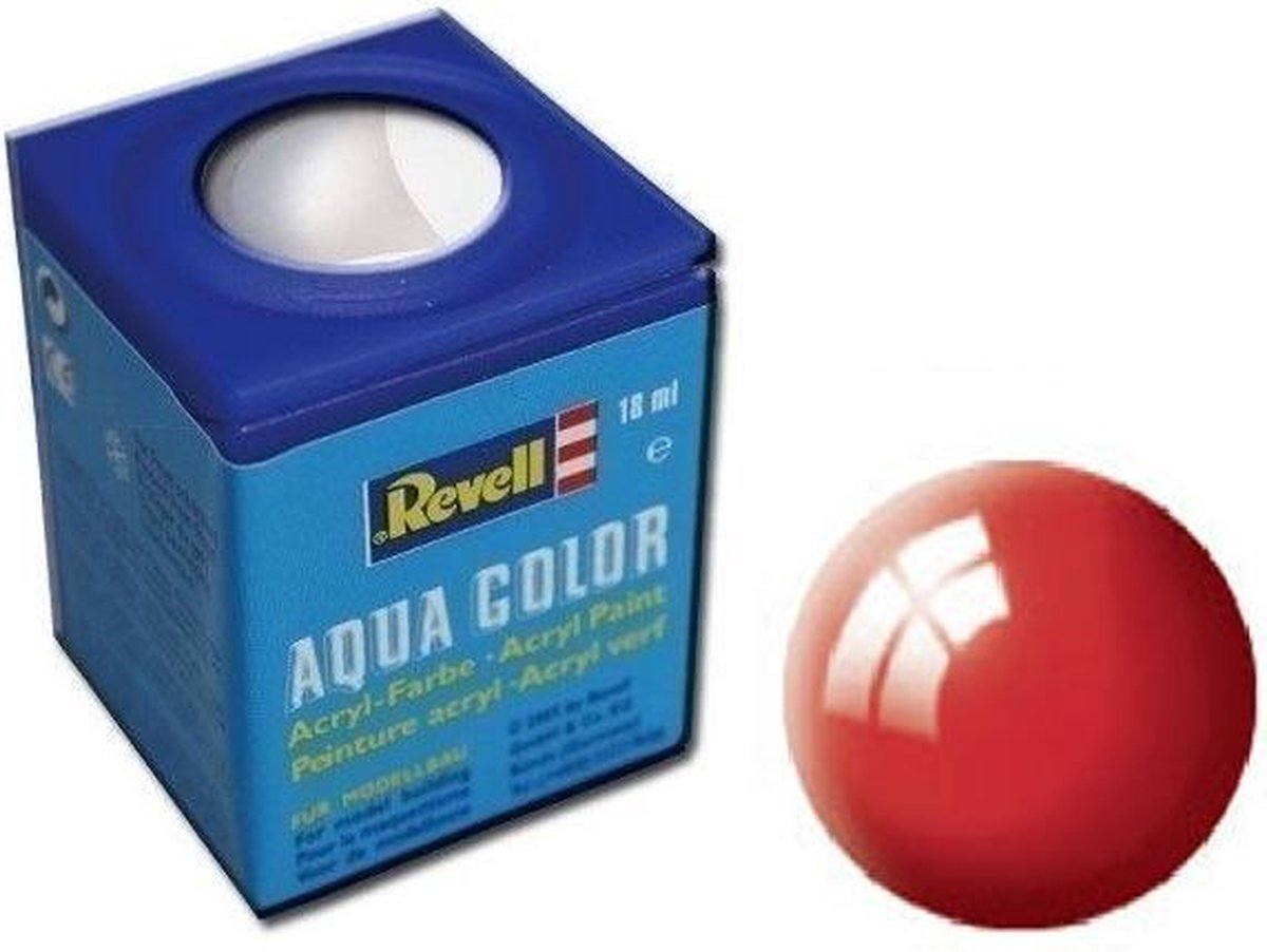 Revell Aqua Color waterverf Revell Aqua Color is met water verdunbare verf met hoge dekking! Milieuvriendelijk, vrijwel reukloos en niet brandbaar! Reeds na een uur kan over de drogende verf heen worden geschilderd. De verf is na twee tot drie uur door en door droog. De diverse kleuren kunnen met elkaar worden gemengd en zijn alleen met water te verdunnen. Met deze modelbouwverf kunnen buitengewoon gladde kleurvlakken gerealiseerd worden. Voor airbrushing wordt de verf met hoogstens 20 tot 25% water verdund. Specificaties: Geslacht: unisex Kleur: rood glanzend Leeftijd: vanaf 12 jaar Materiaal: metaal, verf Inhoud: 18 ml