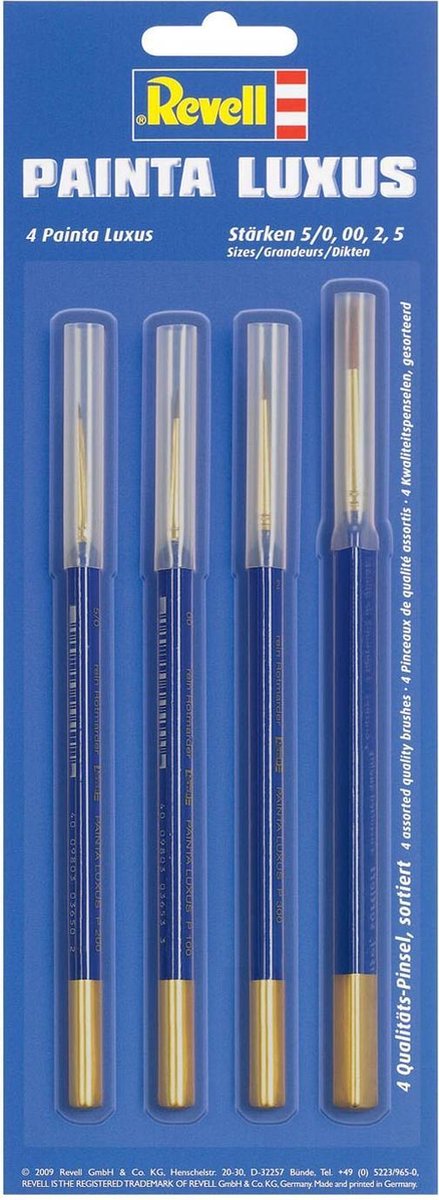 Revell penselenset bestaande uit 4 kwaliteit penselen. penseeldikte: 5/0, 00, 2 en 5.
