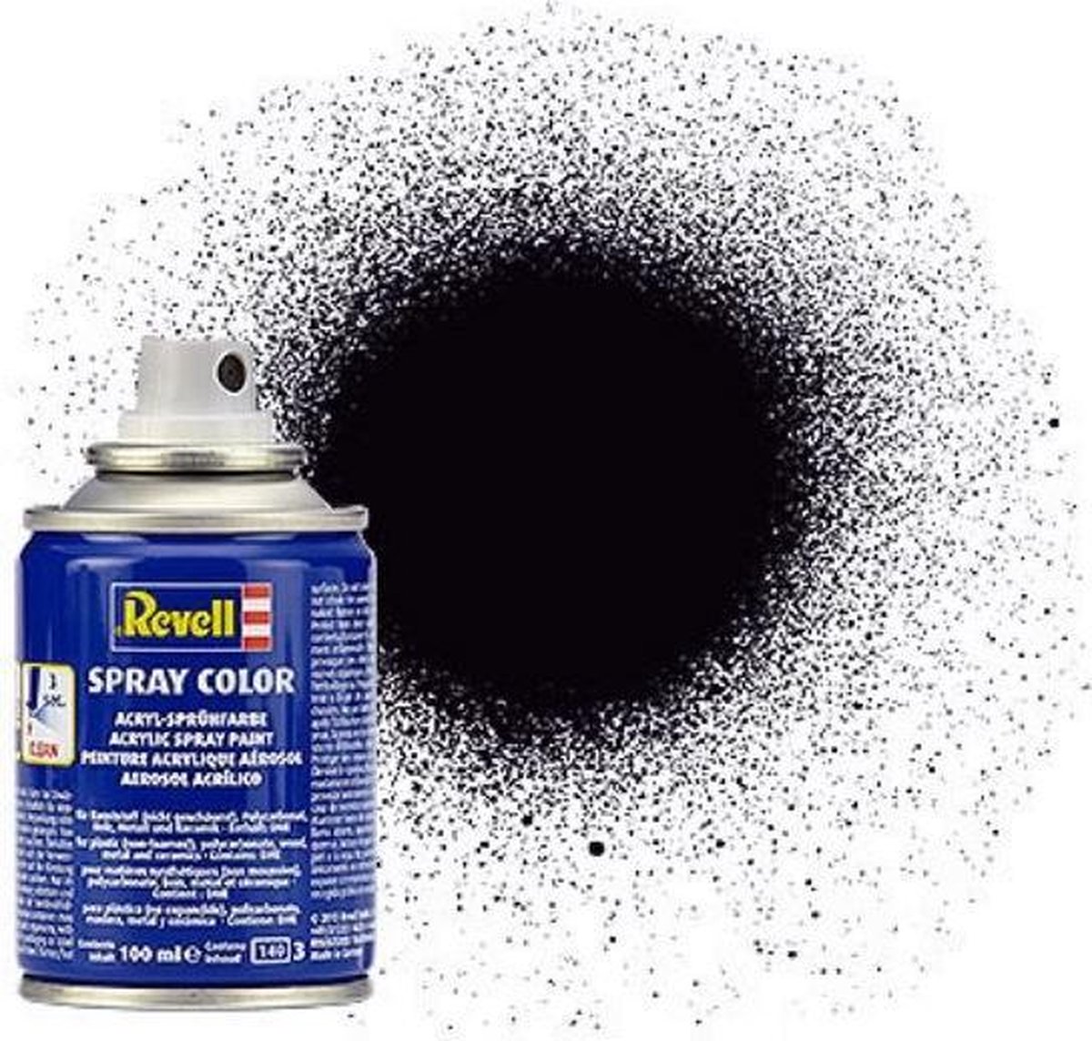 Revell spuitverf Deze Revell Spray Color is een acrylverf met hoge dekking en krasbestendigheid, en bovendien droogt het zeer snel op. Hij is geschikt voor vele materialen zoals, kunststof, hout, metaal en keramiek. Voor gebruik schud je de bus minstens een minuut stevig los en gedurende het aanbrengen herhaal je dit enkele keren. De verf breng je het beste aan op ongeveer 20 tot 30 centimeter van het oppervlak. Als laatste maak je de spuitdop schoon en zo is het direct klaar voor een volgend gebruik. Spuiten maar! Specificaties: Kleur: zwart mat Geslacht: unisex Inhoud: 100 ml Leeftijd: vanaf 12 jaar Materiaal: metaal
