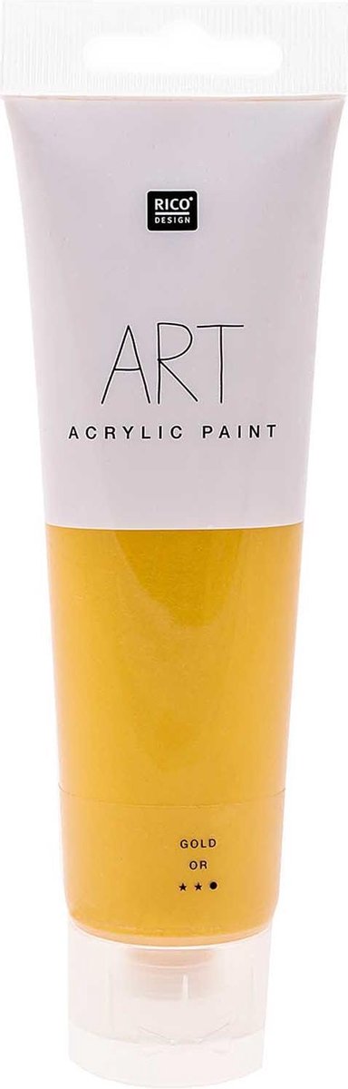 De acrylverf van de Rico Design ART-series is een acrylverf van een prachtige kwaliteit. Haal het maximale uit je kunstwerk met deze mooie structuur en de vele opties aan kleuren! De Acrylverf van Rico Design is geschikt voor verschillende ondergronden. Over het algemeen wordt acrylverf gebruikt voor schildersdoeken, maar je kan het bijvoorbeeld ook gebruiken voor het decoreren van wanden, gebruiksvoorwerpen en andere 3D objecten. Laat je creativiteit de vrije loop! DETAILS: Kleur : Goud Aantal Tubes : 1 Hoeveelheid : 100 ML / Tube