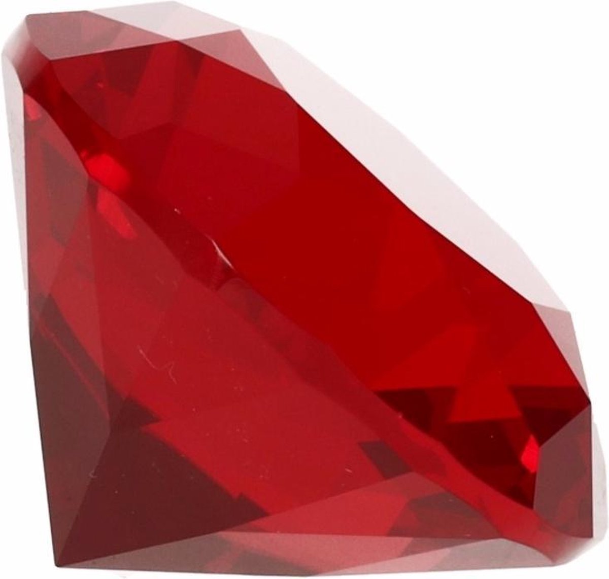 Rode nep diamant 4 cm van glas. Decoratieve, glazen diamant in het rood. Formaat diameter: ca. 4 cm, hoogte: ca. 4 cm. Materiaal: 100% glas.