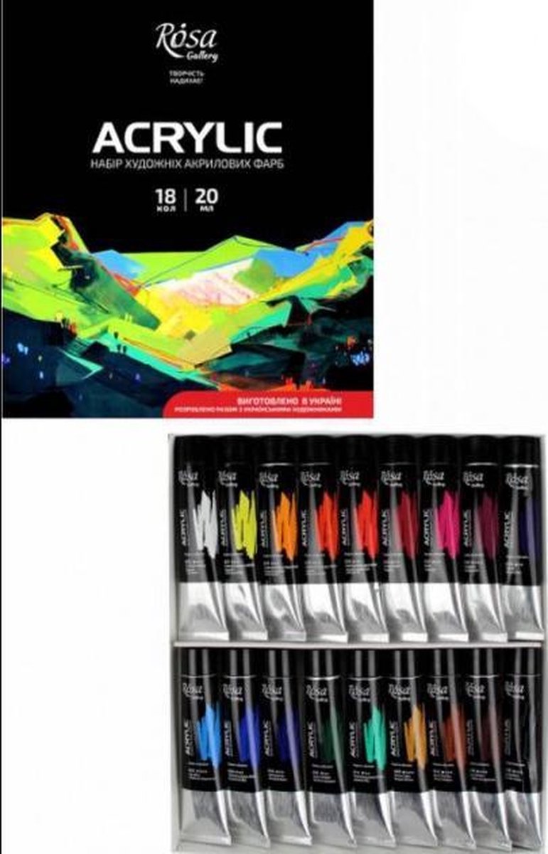 Set met goede kwaliteit acrylverf in briljante kleuren met een satijn glans die te mixen zijn met andere kleuren acrylverf. Deze nieuwe acrylverf uit Oekraïne doet niet onder voor de bekende merken. Watervast wanneer deze compleet opgedroogd is.