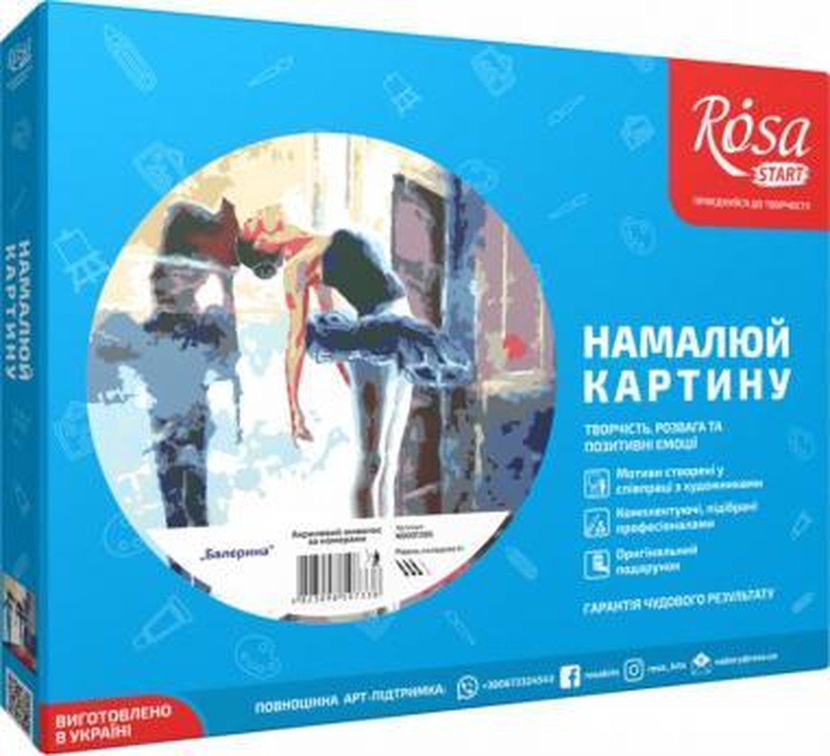 Het proces van het maken van een schilderij is met de creatieve Schilderen op Nummer sets van Rosa zowel gemakkelijk als adembenemend. De contouren van het schilderij zijn op het doek aangebracht, de vlakken zijn verdeeld in afzonderlijke segmenten met cijfers, wat overeenkomt met het nummer op de pot met hoogwaardige dekkende acrylverf. Door ze geleidelijk in te kleuren, maak je een prachtig schilderij! Let wel op, hoe meer vakjes en kleuren, hoe hoger de moeilijkheidsgraad.