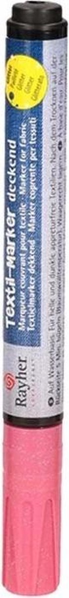 Roze glitter textielstift, dekkend. Stift met een dikke punt om op kleding (textiel) te schrijven zonder te fixeren! Schrijven, laten drogen en klaar om te dragen. De stift is watervast dus het textiel kan in de wasmachine.